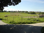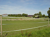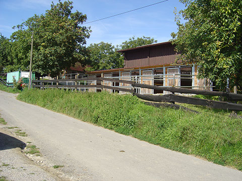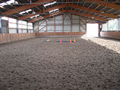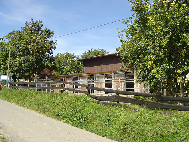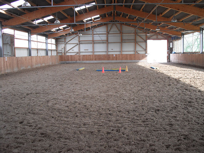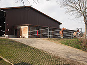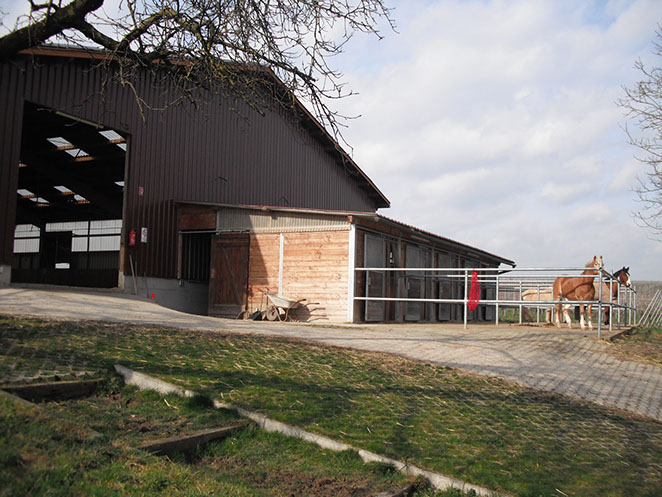 Die Halle (20 x 40 m) wurde 2011 erbaut, mit großen Lichtfeldern und Windschutznetz